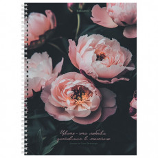Тетрадь А4, 120 л., BRAUBERG, гребень, клетка, глянцевый лак, Цветы, 405645