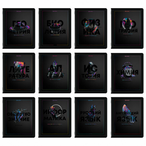 Предметные тетради BRAUBERG из серии "MAJESTIC BLACK" со справочным материалом предназначены для учащихся средних и старших классов.В комплекте 12 тетрадей: Алгебра, Английский язык, Биология, География, Геометрия, Обществознание, История, Информатика, Литература (в линию), Русский язык (в линию), Физика, Химия. Тетради содержат 48 листов, изготовленных из высококачественной офсетной бумаги плотностью 60 г/м2 и 100% белизны, с красными полями. Листы соединены скобами. Обложка изготовлена из мелованного картона. Матовое покрытие с выборочным глянцевым лаком обеспечивает обложке яркий визуальный эффект. В справочном материале собраны основные подсказки по школьному предмету.
