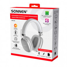 Наушники беспроводные накладные полноразмерные раздвижные мультирежимные, SONNEN HP-B12S, Bluetooth 5.4, серебристые, 514127