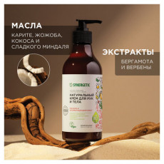 Крем для рук и тела 380 мл SYNERGETIC Сандал и ягоды можжевельника, натуральный, дозатор, 300010