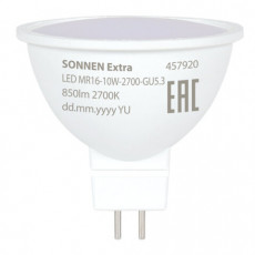 Лампа светодиодная SONNEN EXTRA, 10 (90) Вт, GU5.3, теплый белый, 30000 ч, LED MR16-GU5.3-10W-2700, 457920