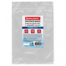 Пакет Дой-Пак с замком ZIP LOCK, прозрачный 180 х 260 + 40 мм, 100 штук 70 мкм, BRAUBERG, 700699