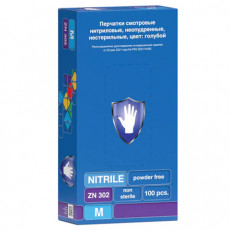 Перчатки нитриловые смотровые 50 пар (100шт), р-р M (средний), голубые, SAFE&CARE ZN302, ЧЗ, шк10386