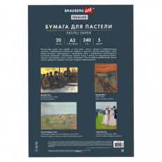 Бумага для пастели АБРАЗИВНАЯ А3, альбом (склейка), 20 листов, 4 цвета, 240 г/м2, BRAUBERG ART, 117770