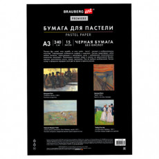 Бумага для пастели АБРАЗИВНАЯ А3 в папке, 15 листов, ЧЕРНАЯ, 240 г/м2, BRAUBERG ART, 117766