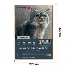 Бумага для пастели АБРАЗИВНАЯ А3 в коробке, 40 листов 10 цветов, 240 г/м2, BRAUBERG ART, 117768