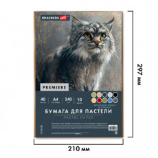 Бумага для пастели АБРАЗИВНАЯ А4 в коробке, 40 листов, 10 цветов, 240 г/м2, BRAUBERG ART, 117767