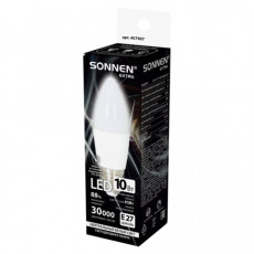Светодиодная лампа SONNEN EXTRA компактного размера. Срок службы лампы составляет не менее 30000 часов, что примерно в 30 раз больше, чем у обычной лампы накаливания.Оснащена цоколем типа Е14 и излучает теплый белый cвет. Отличается длительным сроком службы. Имеет форму колбы "свеча" и сделана из белого матового пластика. Мощность лампы составляет 10 Вт. Представленная модель дает световой поток 850 Лм, а цветовая температура равна 2700 K. Диаметр лампы составляет 37 мм. Производитель сохраняет за собой право на внесение изменений в технические характеристики, комплектацию и конструкцию данной модели для улучшения эксплуатационных свойств без предварительного уведомления.